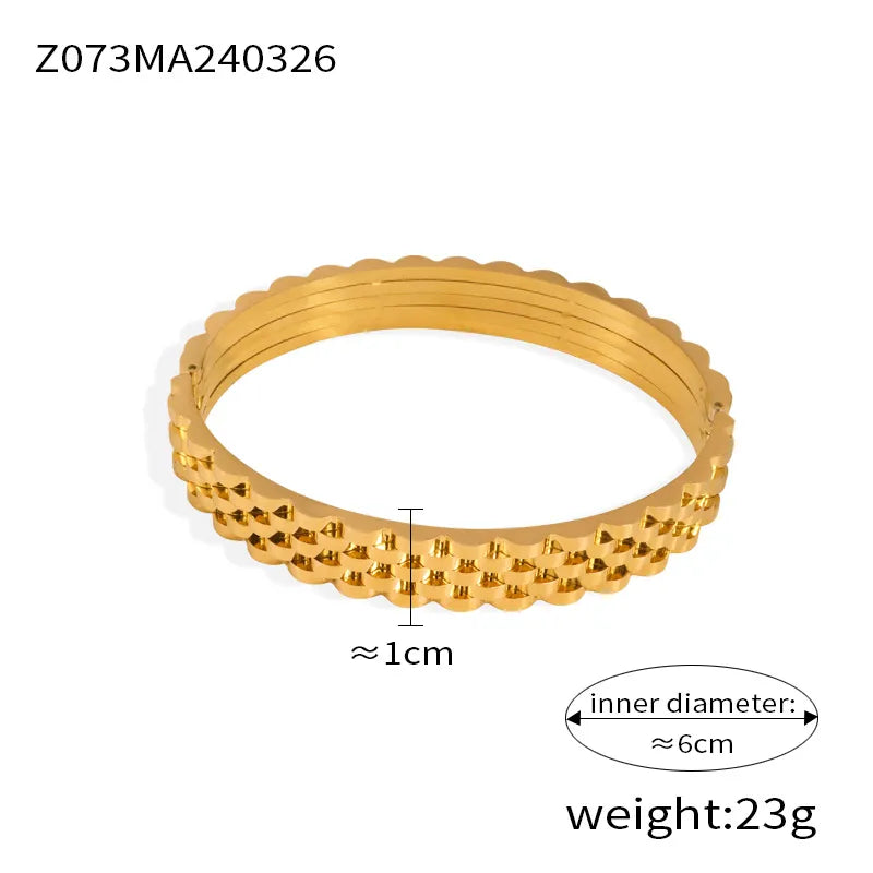 Crafted from high-quality 304 stainless steel and coated with real 18K gold using advanced PVD technology (0.03µm–0.05µm), this bracelet offers a waterproof, non-tarnish shine that lasts beautifully over time.