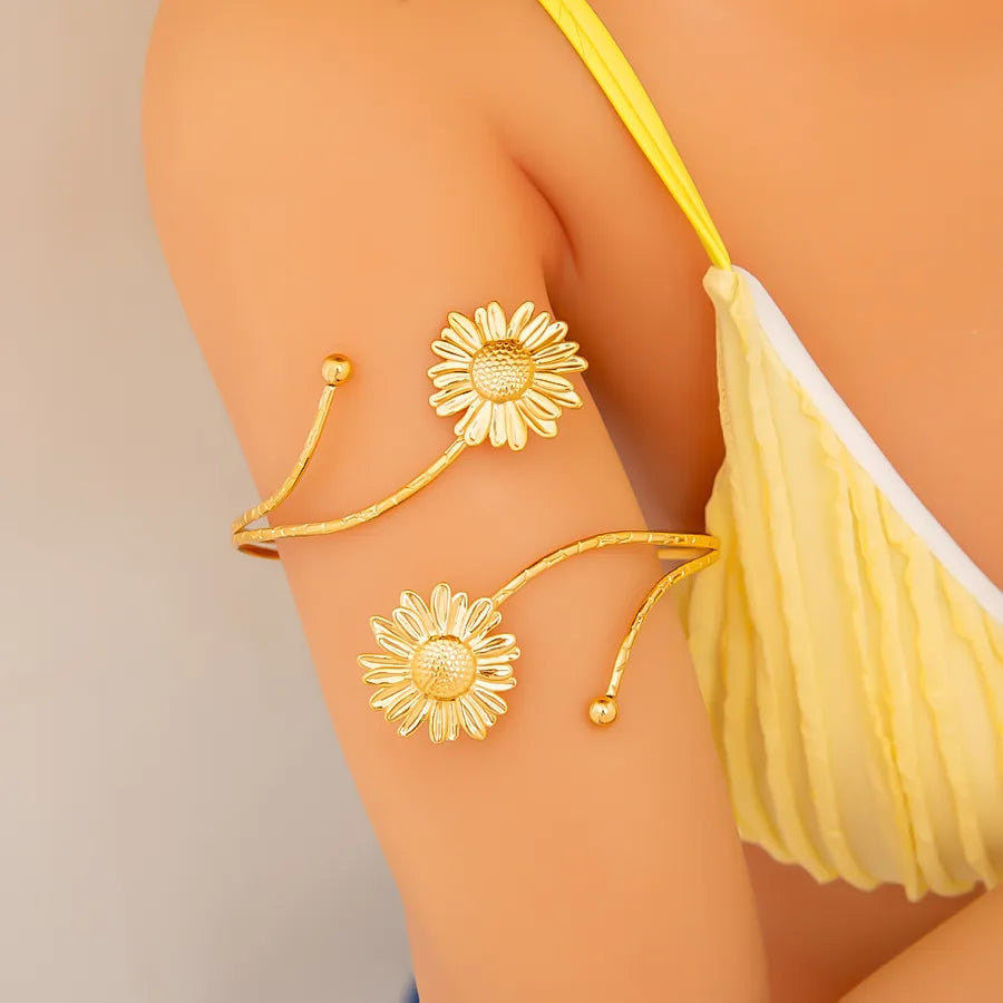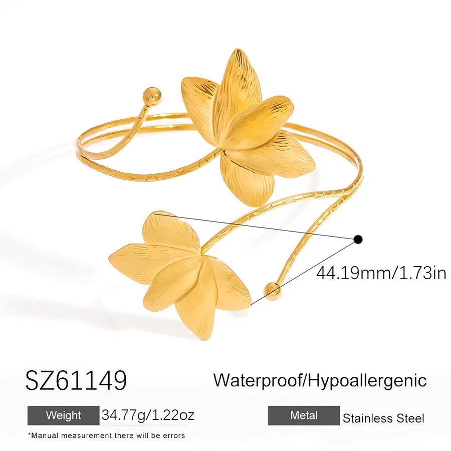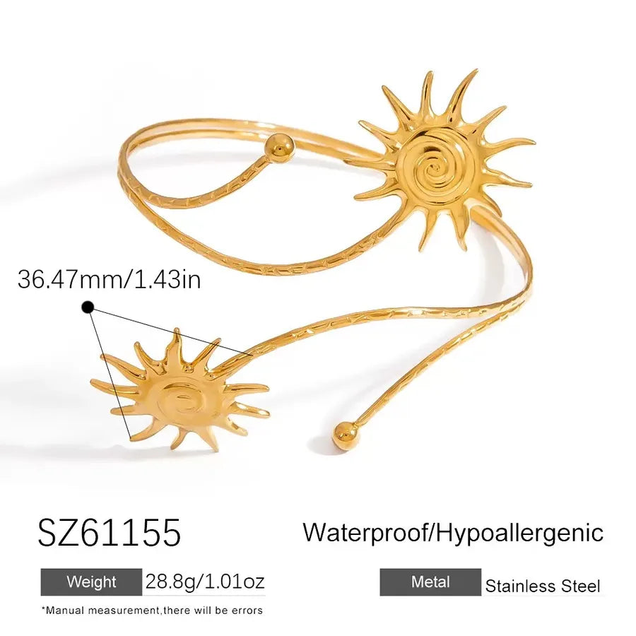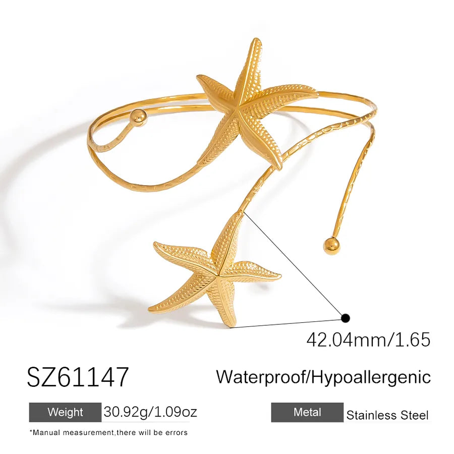 Elevate your summer style with this luxurious 18K real gold plated stainless steel arm bracelet, crafted from high-quality 304 stainless steel and finished with a durable PVD coating for a waterproof, non-tarnish shine. Designed in a unique woven pattern featuring starfish and flower details, this bracelet embodies effortless vacation elegance.