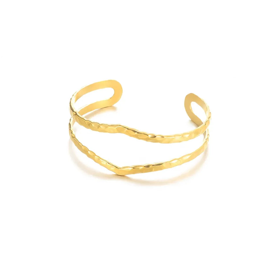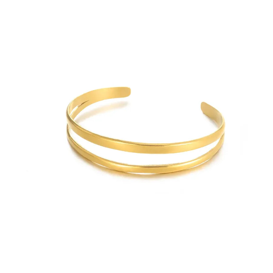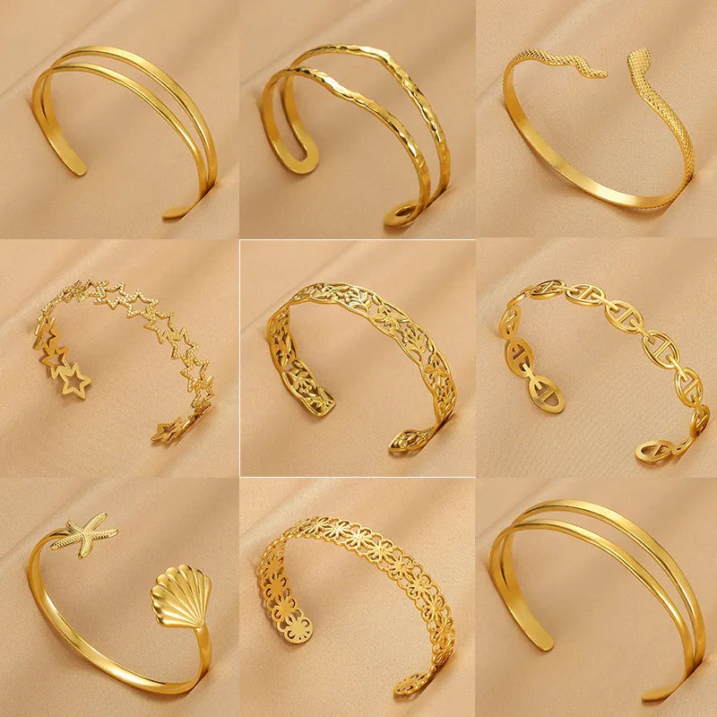 Add timeless elegance to your look with this classic 18K real gold plated stainless steel bangle. Crafted from premium 304 stainless steel, this geometric bracelet combines simple and classic style—perfect for every season and any occasion, from holiday outings to street fashion.