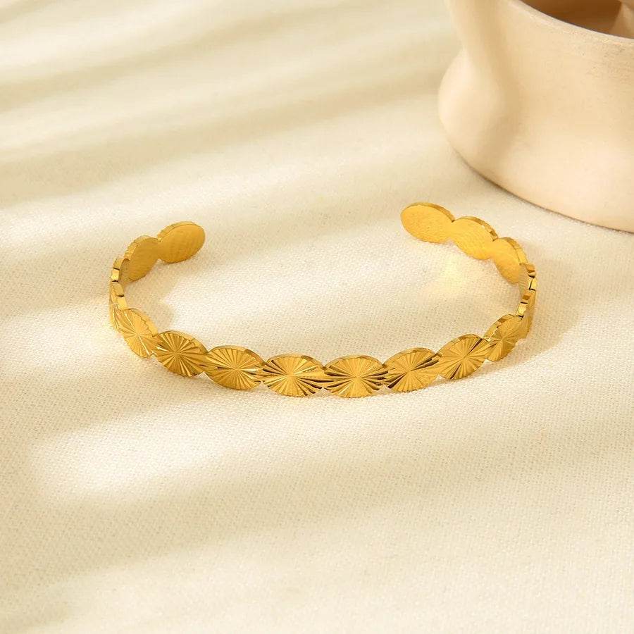 Add a touch of timeless elegance with this Geometric Stainless Steel Bangle, designed for women who love retro and classic styles.