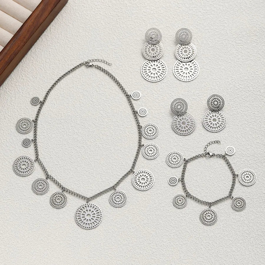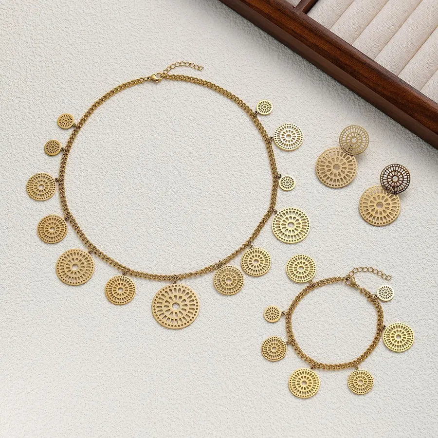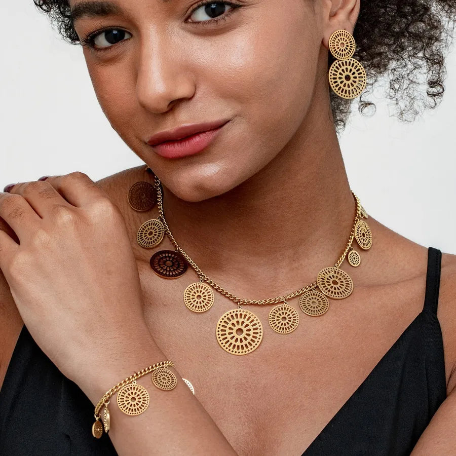 Add a modern and elegant touch to your outfit with this Geometric Jewelry Set for women. Crafted from durable 304 stainless steel and finished with luxurious 18K real gold plating using a PVD-coated, waterproof, non-tarnish process, this set is designed to maintain its shine and beauty over time.