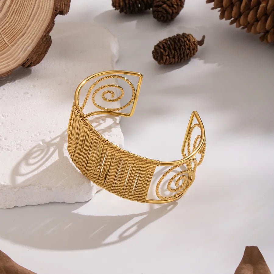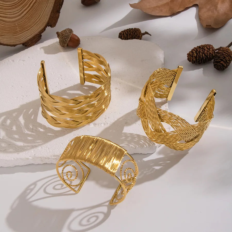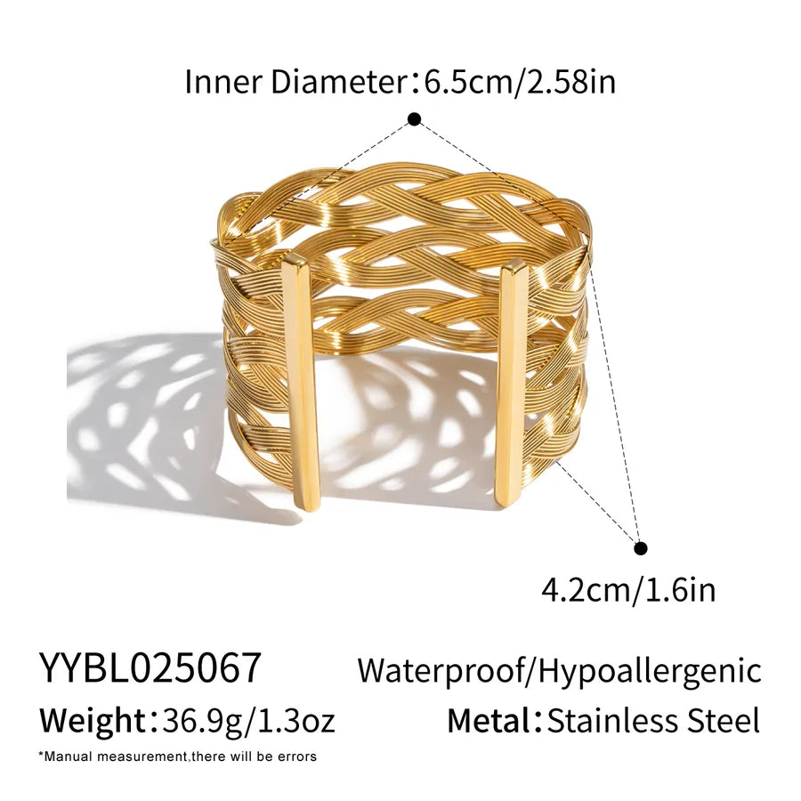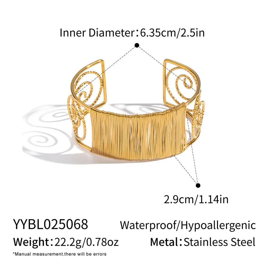 Crafted from high-quality 201 and 304 stainless steel with real 18K gold plating via PVD coating, this stone-free bracelet is polished, durable, and non-fading, perfect for adding a high-end touch to any outfit.